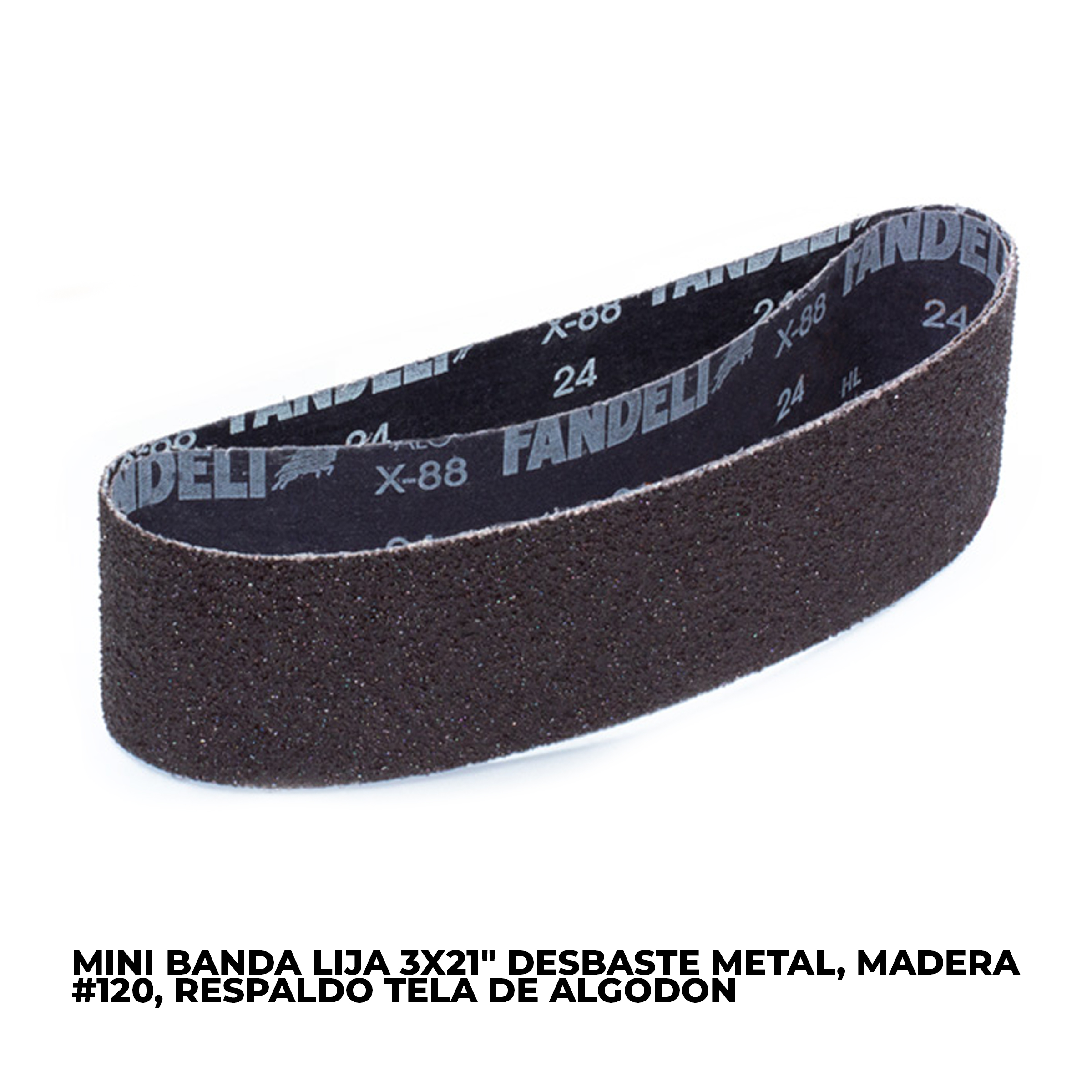 MINI BANDA LIJA 3X24" DESBASTE METAL, MADERA #120, RESPALDO TELA DE ALGODON