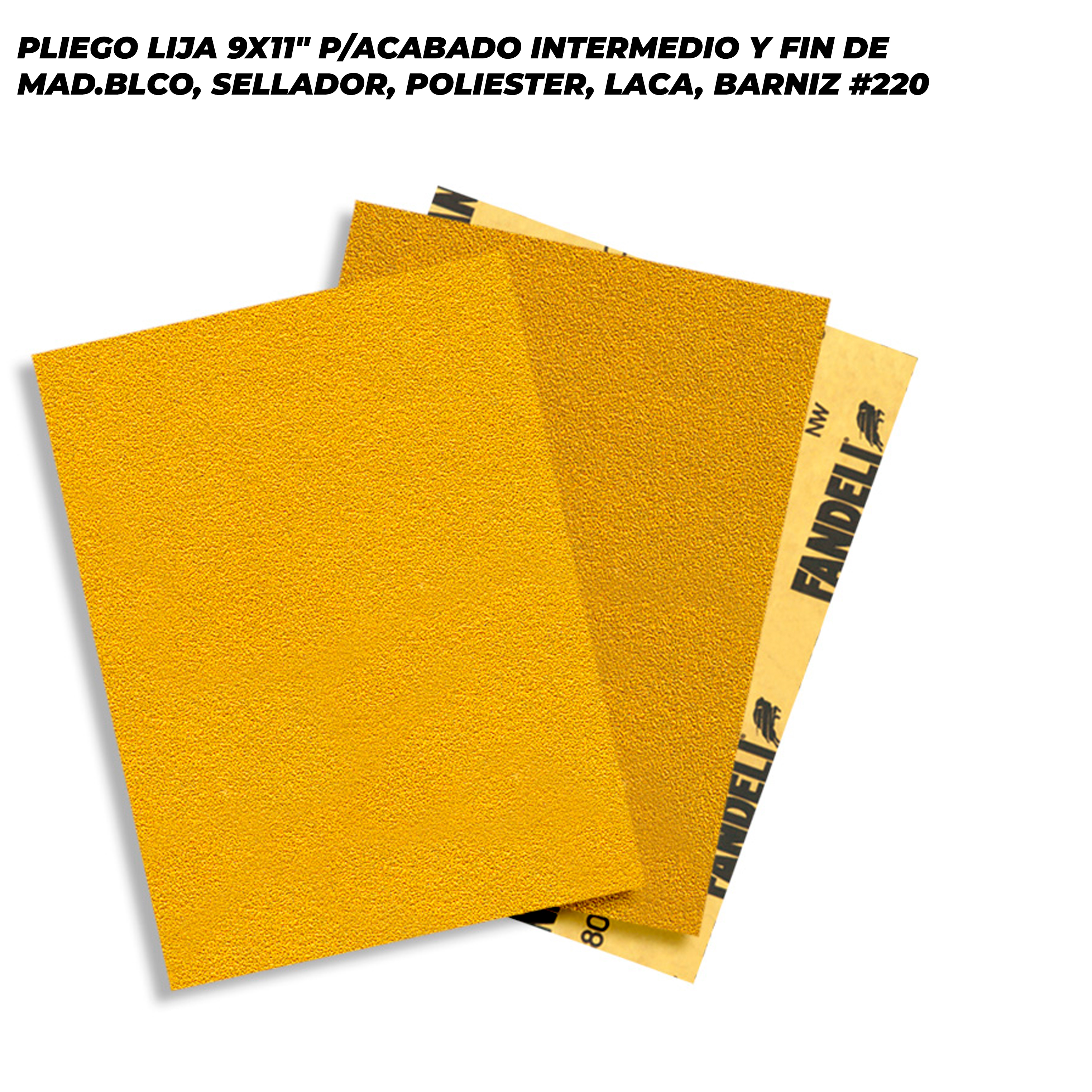 PLIEGO LIJA 9X11" P/ACABADO INTERMEDIO Y FIN DE MAD.BLCO, SELLADOR, POLIESTER, LACA, BARNIZ #220