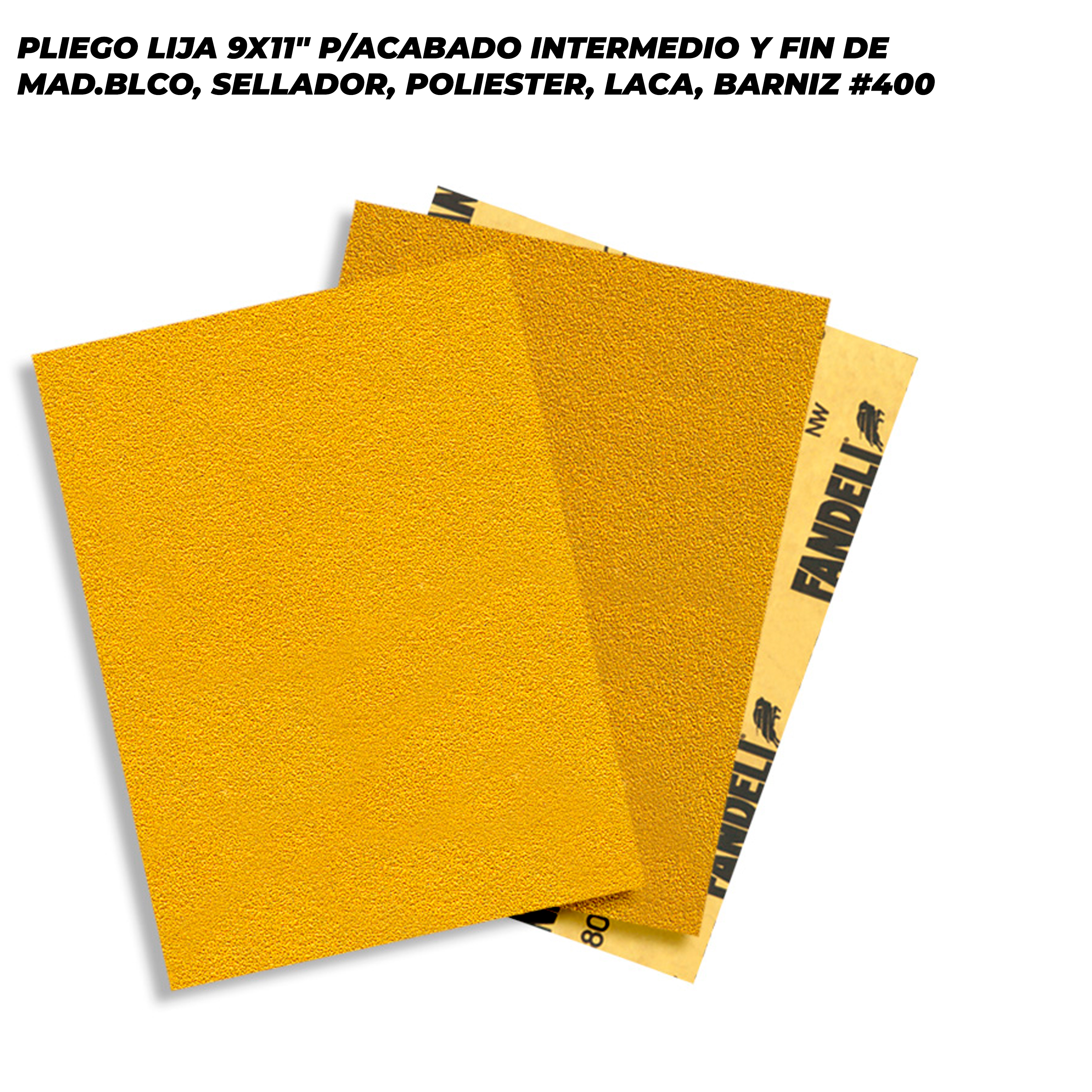 PLIEGO LIJA 9X11" P/ACABADO INTERMEDIO Y FIN DE MAD.BLCO, SELLADOR, POLIESTER, LACA, BARNIZ #400