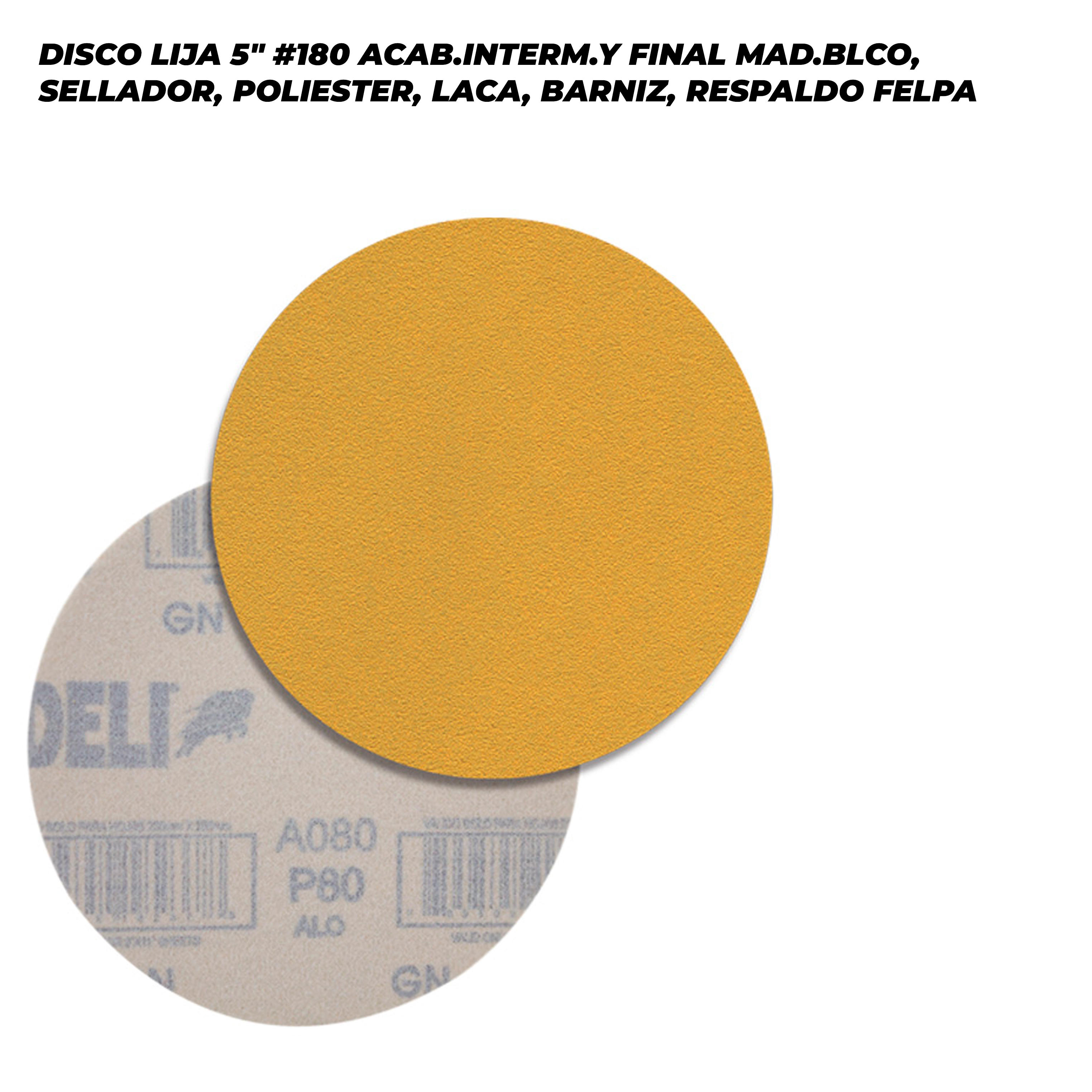 DISCO LIJA 5" #180 ACAB.INTERM.Y FINAL MAD.BLCO, SELLADOR, POLIESTER, LACA, BARNIZ, RESPALDO FELPA