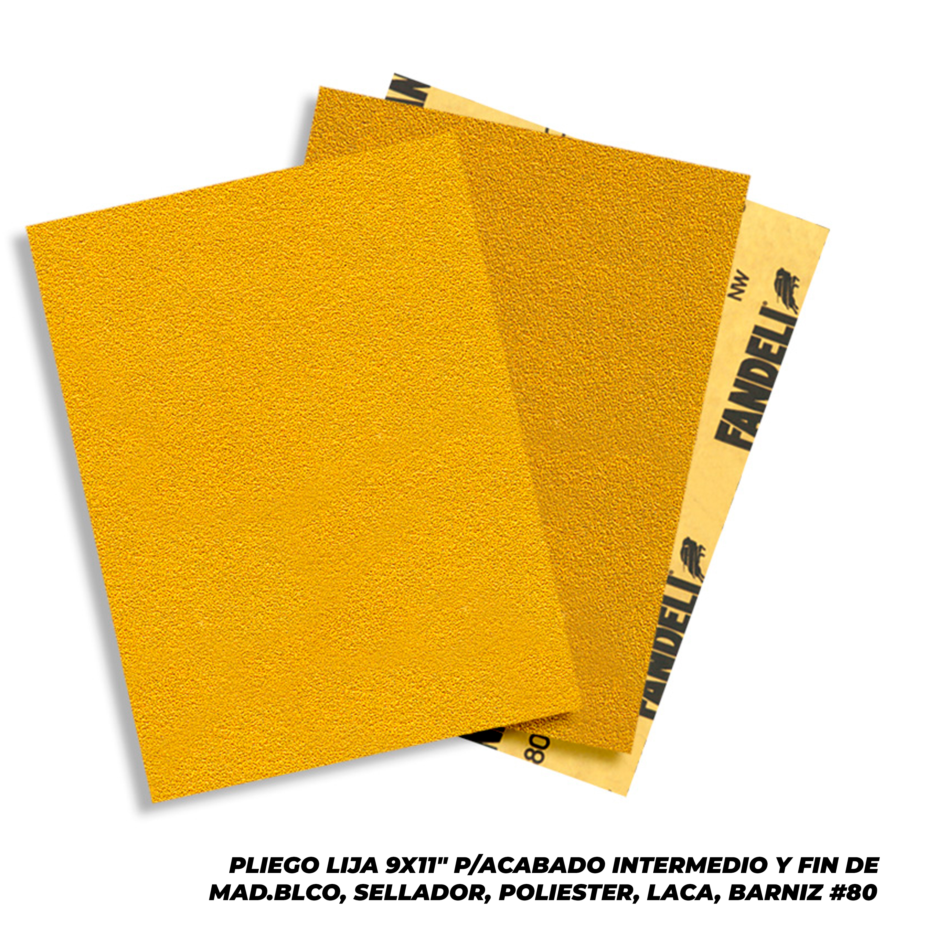 PLIEGO LIJA 9X11" P/ACABADO INTERMEDIO Y FIN DE MAD.BLCO, SELLADOR, POLIESTER, LACA, BARNIZ #80