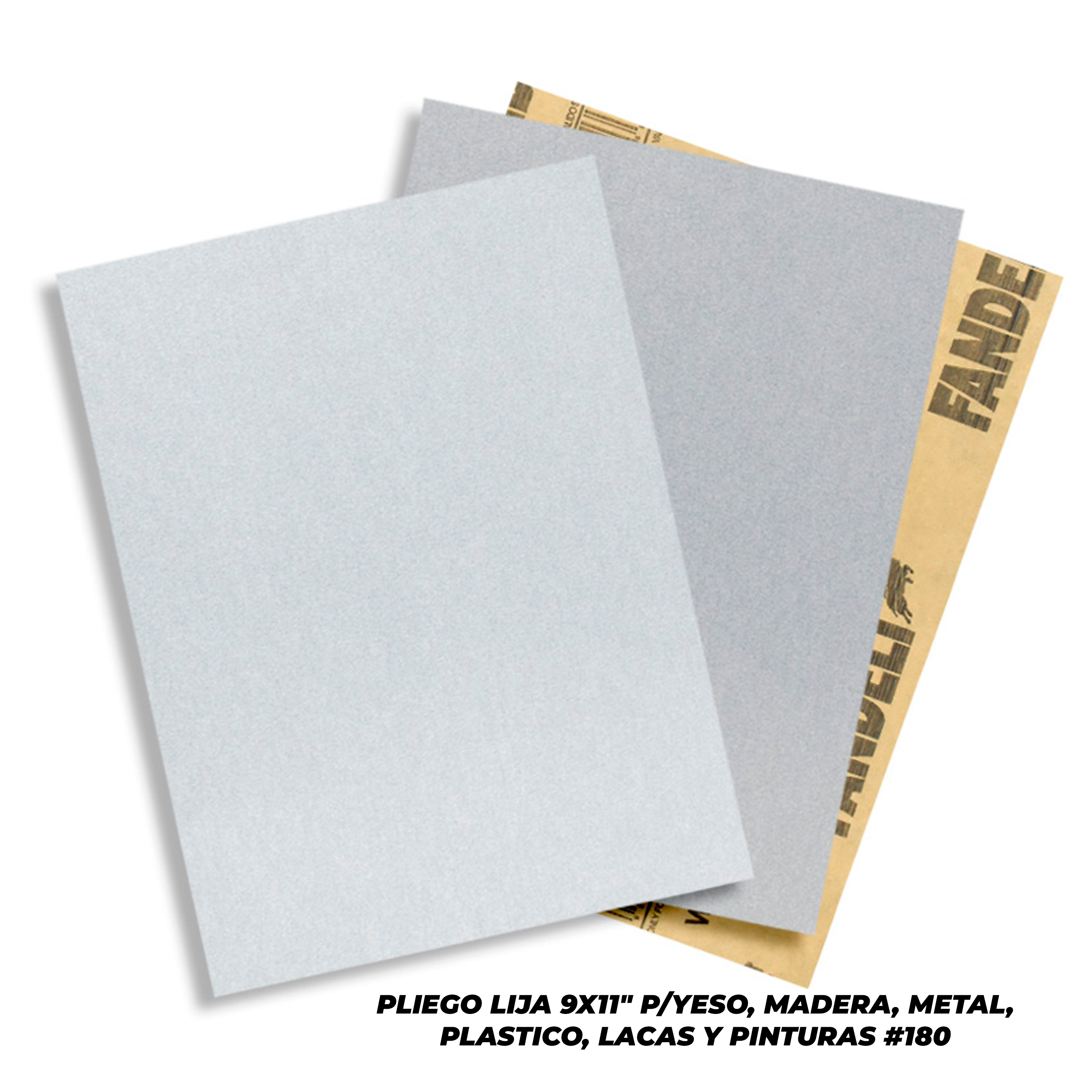 PLIEGO LIJA 9X11" P/YESO, MADERA, METAL, PLASTICO, LACAS Y PINTURAS #180