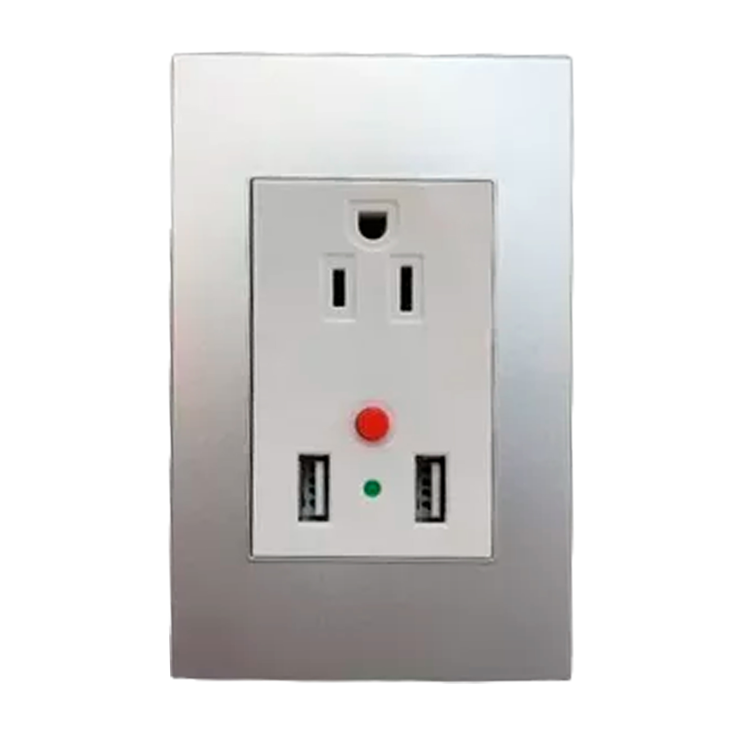 INTERRUPTOR DOBLE 15A-125V BLANCO METALICO PLATA