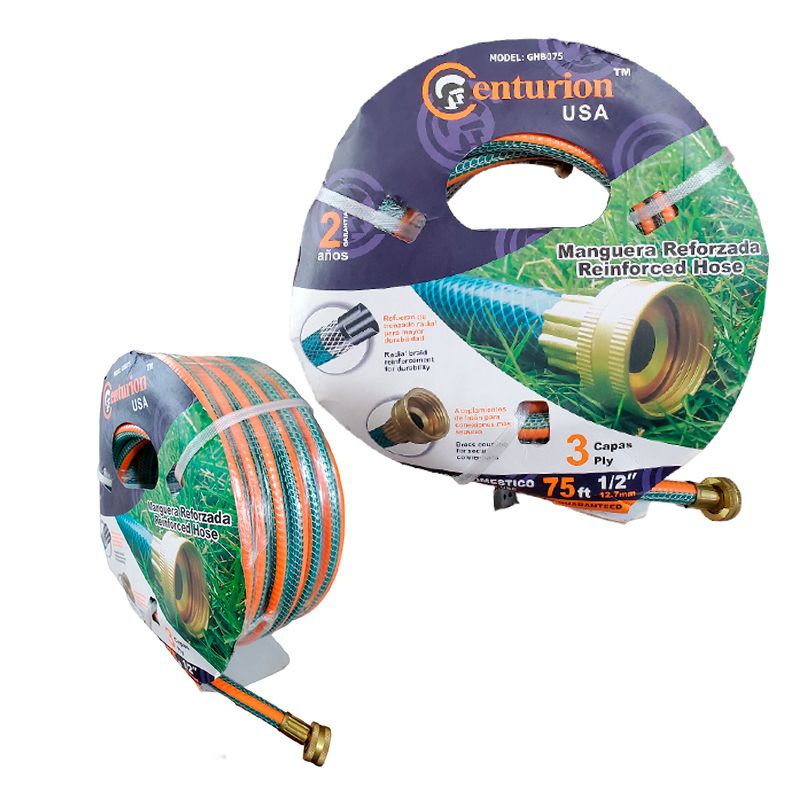 MANGUERA REFORZADA 3 CAPAS CON CONECCIONES DE BRONCE 1/2"X75´ MARCA CENTURION