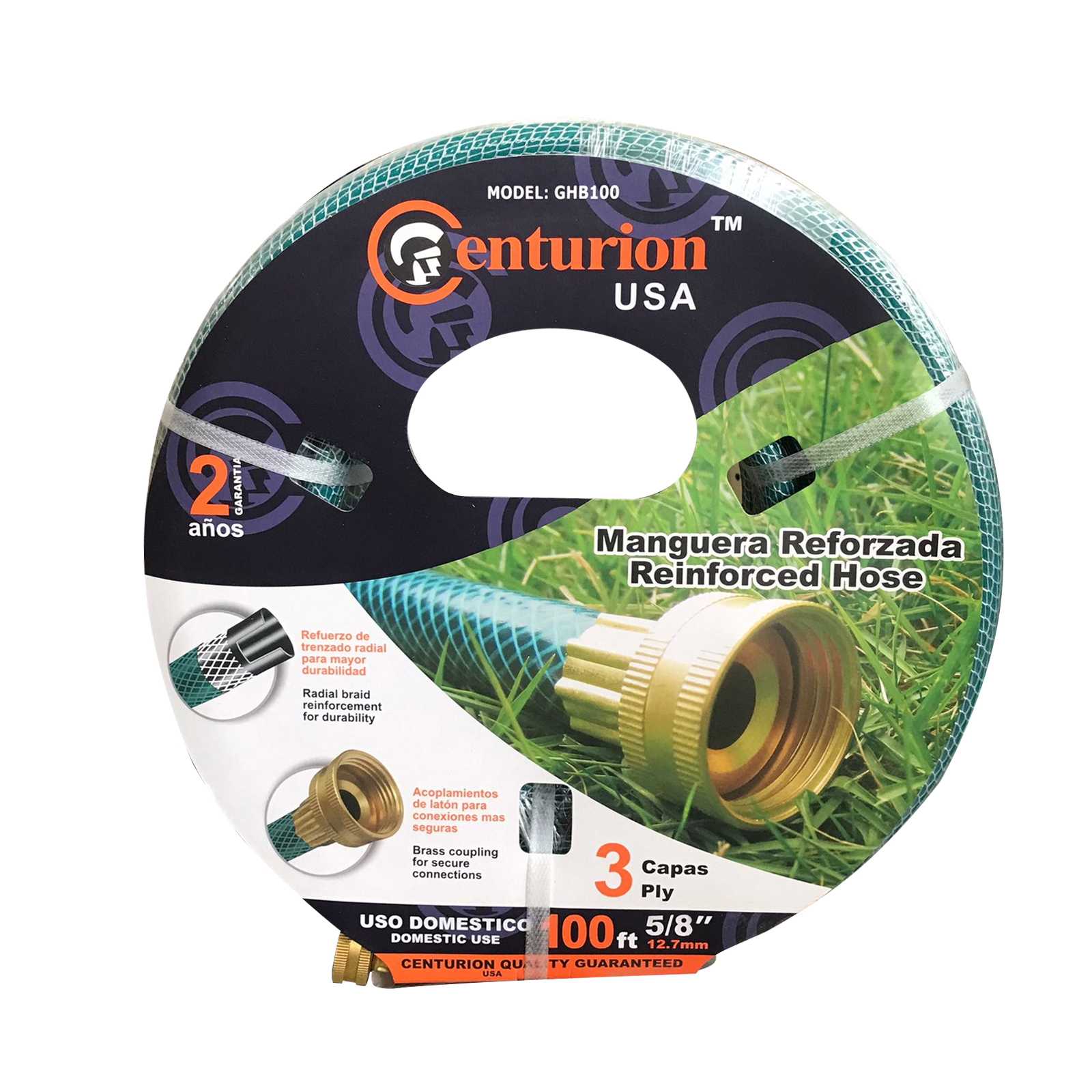 MANGUERA REFORZADA 5/8" CONECCIONES DE BRONCE 100´ MARCA CENTURION