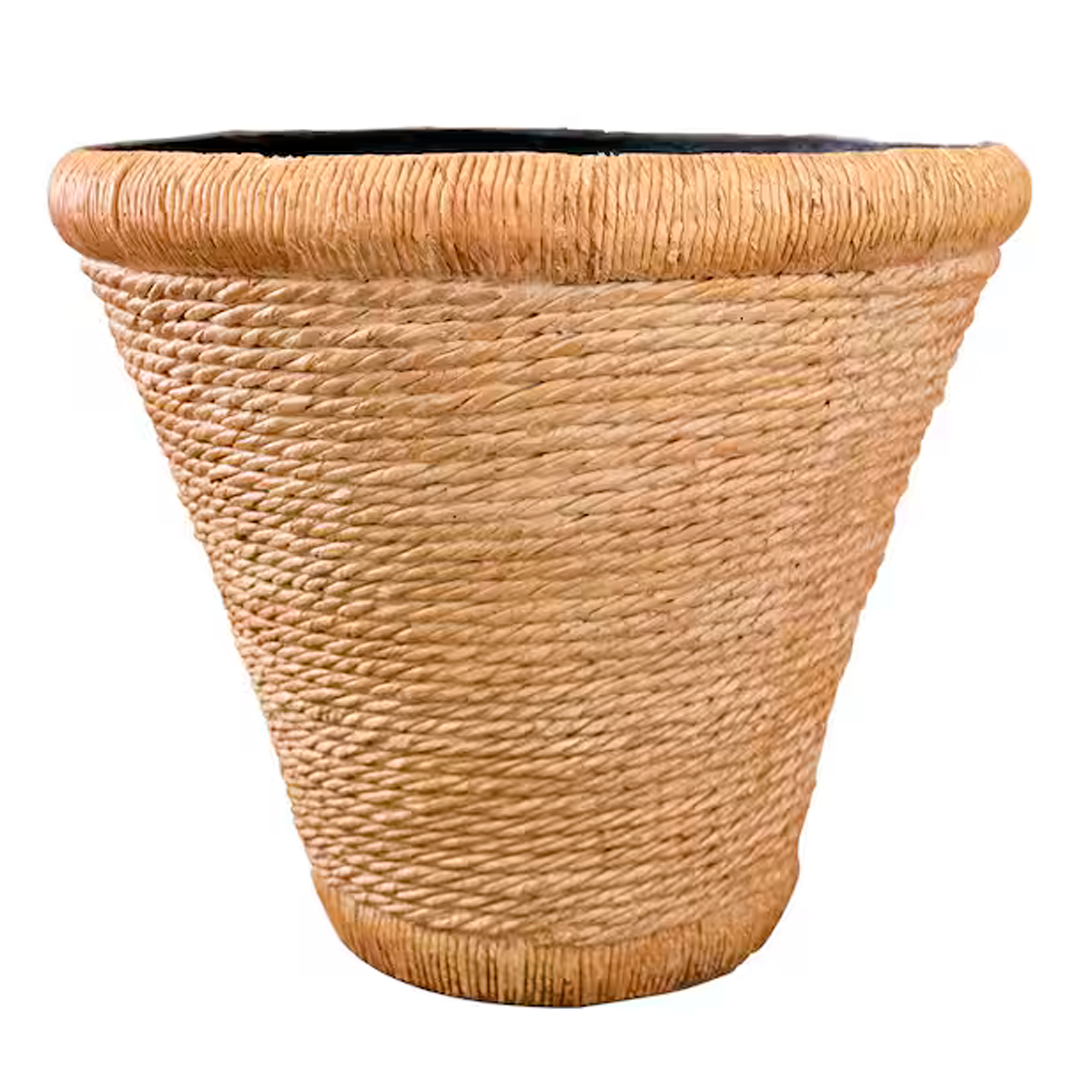 MACETERA REDONDA 21.75" C/TEJIDO SINTETICO DE LAZO COLOR BEIGE,