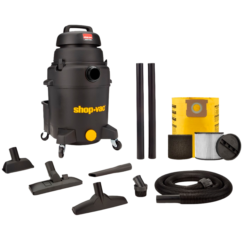 ASPIRADORA DE POLIETILENO 10 GAL 4.5PHP HUMEDO/SECO C/RODOS 27"ALTOX18.25"Ø SHOP VAC COLOR NEGRO