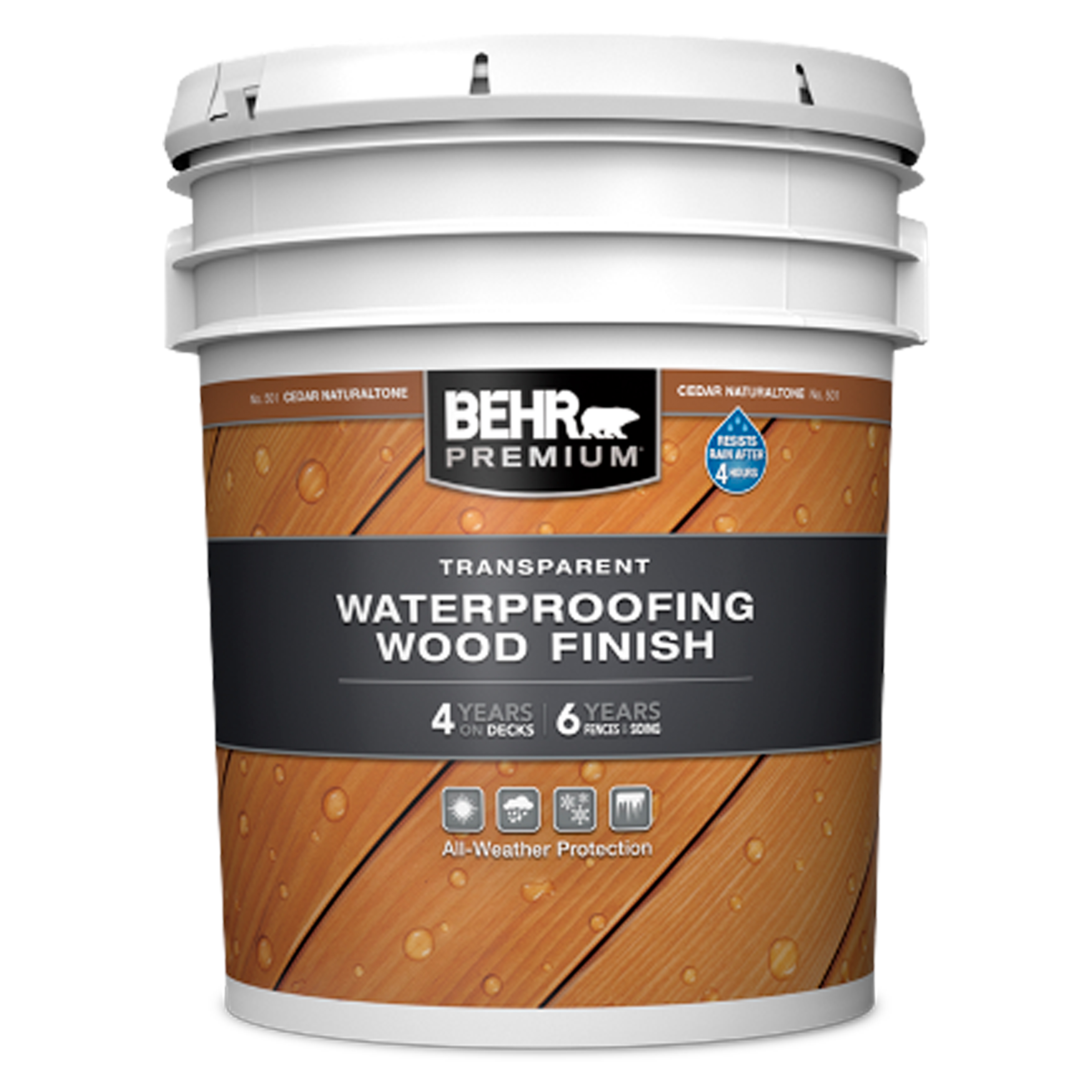 CUB.5 GAL BEHR IMPERMEABILIZANTE P/MADERA TRANSP. 6 AÑOS PROTECCION (500-N)