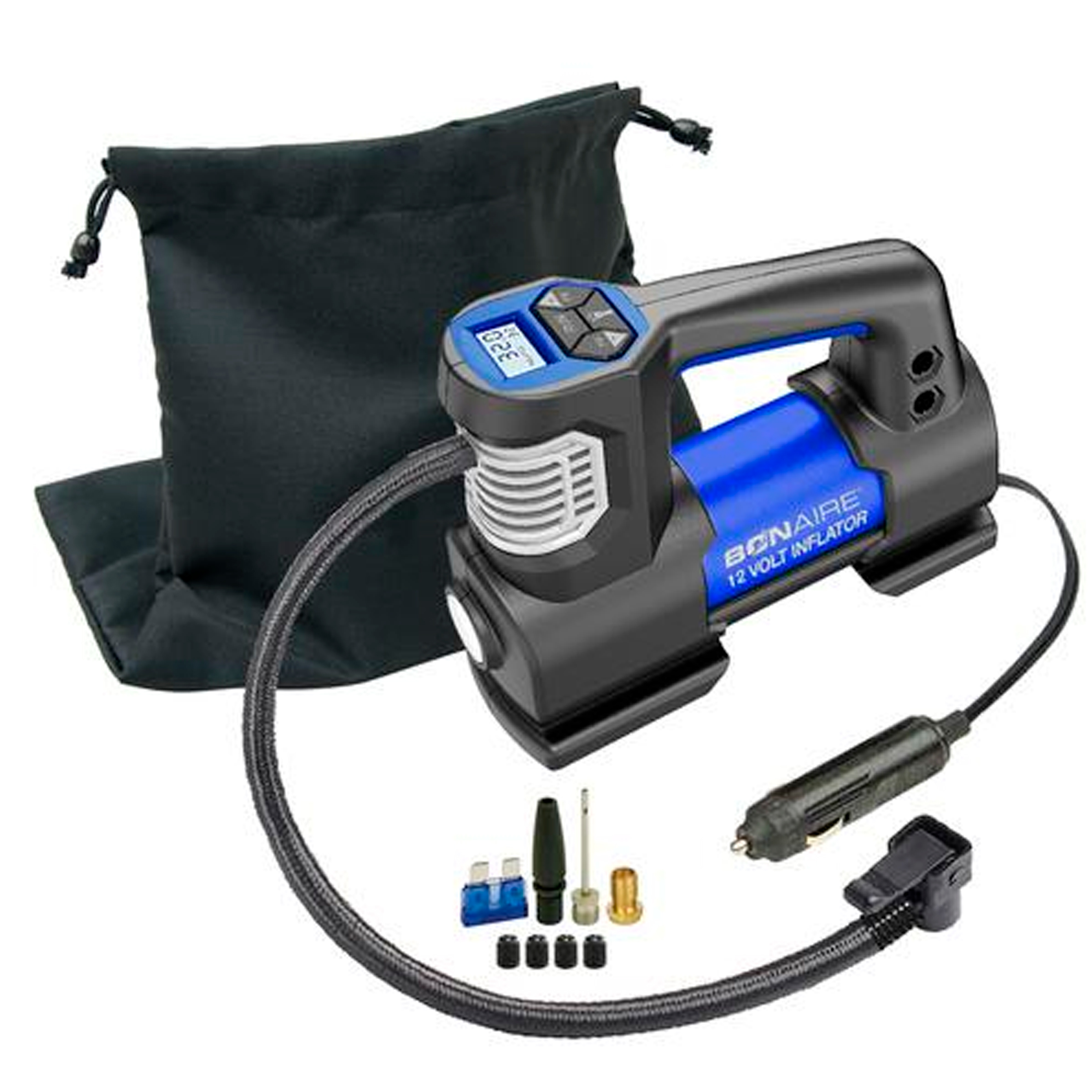 MINI COMPRESOR D/AIRE USOS VARIOS C/LUZ DE TRABAJO MED. D/AIRE DIG 12V C/CONECCION P/ENCEND BON AIRE