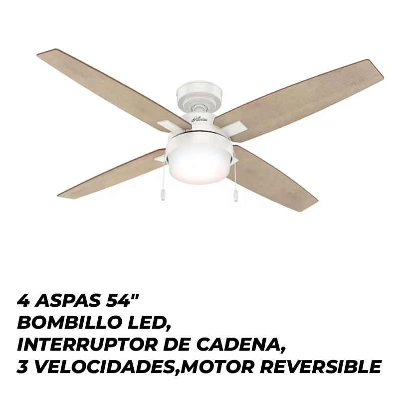 VENTILADOR DE TECHO CRESTFIELD 54""ACABADO EN BLANCO 4 ASPAS C/LAMPARA INT/EXT