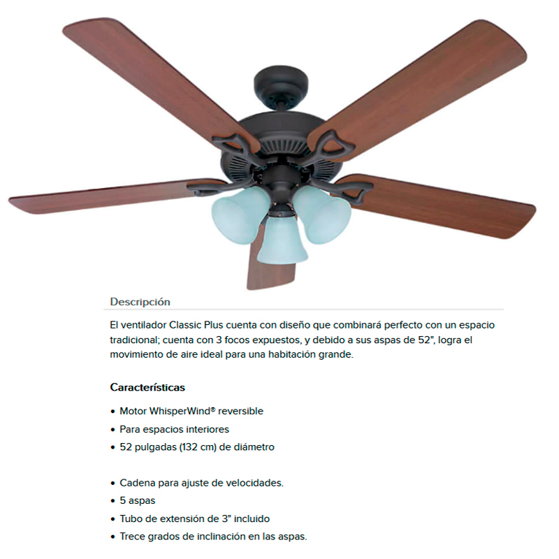 VENTILADOR TECHO CLASSIC PLUS 52" NEW BRONZE 5 ASPAS REVERSIBLE