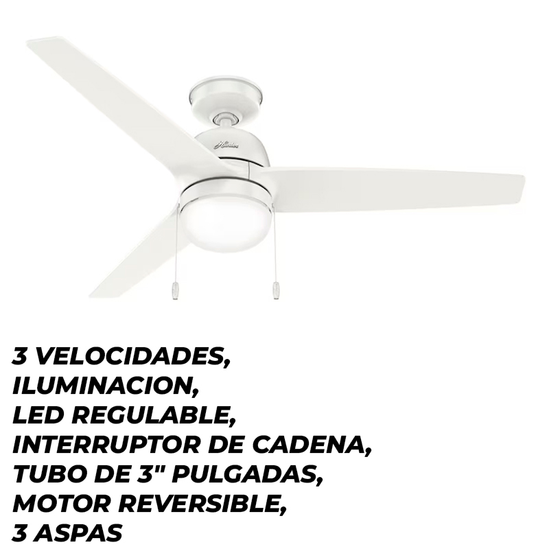 VENTILADOR DE TECHO SEAWAVE FAN 52" BLANCO CON 3 ASPAS C/LAMPARA INT/EXT
