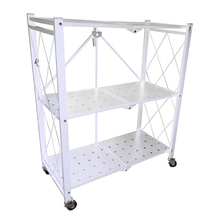 ESTANTE 3 REPISAS SOLIDAS 28X13 3/8X33 7/8" METAL PLEGABLE PARA ALMACENAMIENTO, CON RODOS, BLANCO