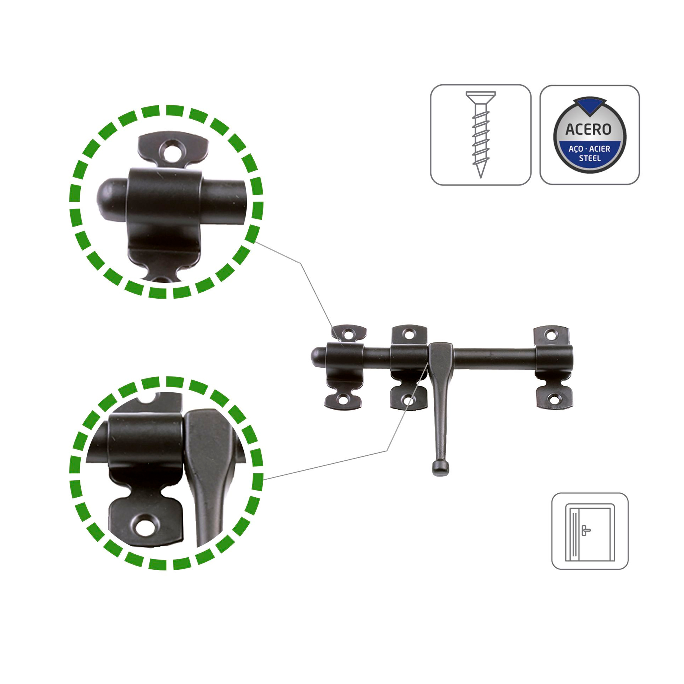 PASADOR C/CADENA SEGURIDAD MOD.1-200MM ACERO INOX 18/8