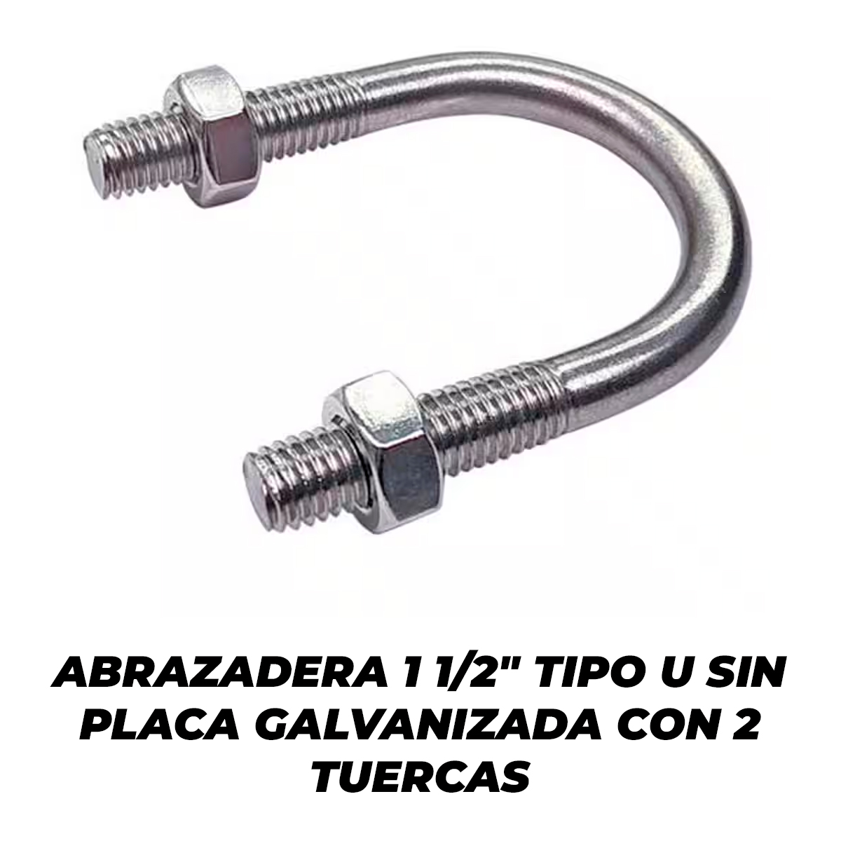 ABRAZADERA 1 1/2" TIPO U SIN PLACA GALVANIZADA CON 2 TUERCAS