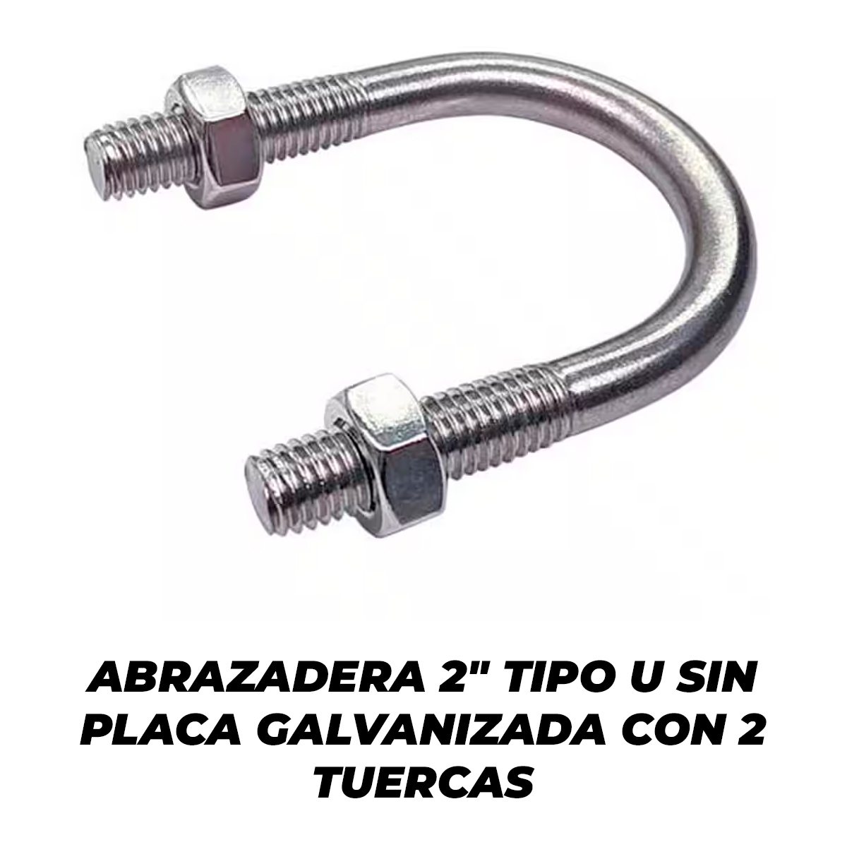 ABRAZADERA 2" TIPO U SIN PLACA GALVANIZADA CON 2 TUERCAS