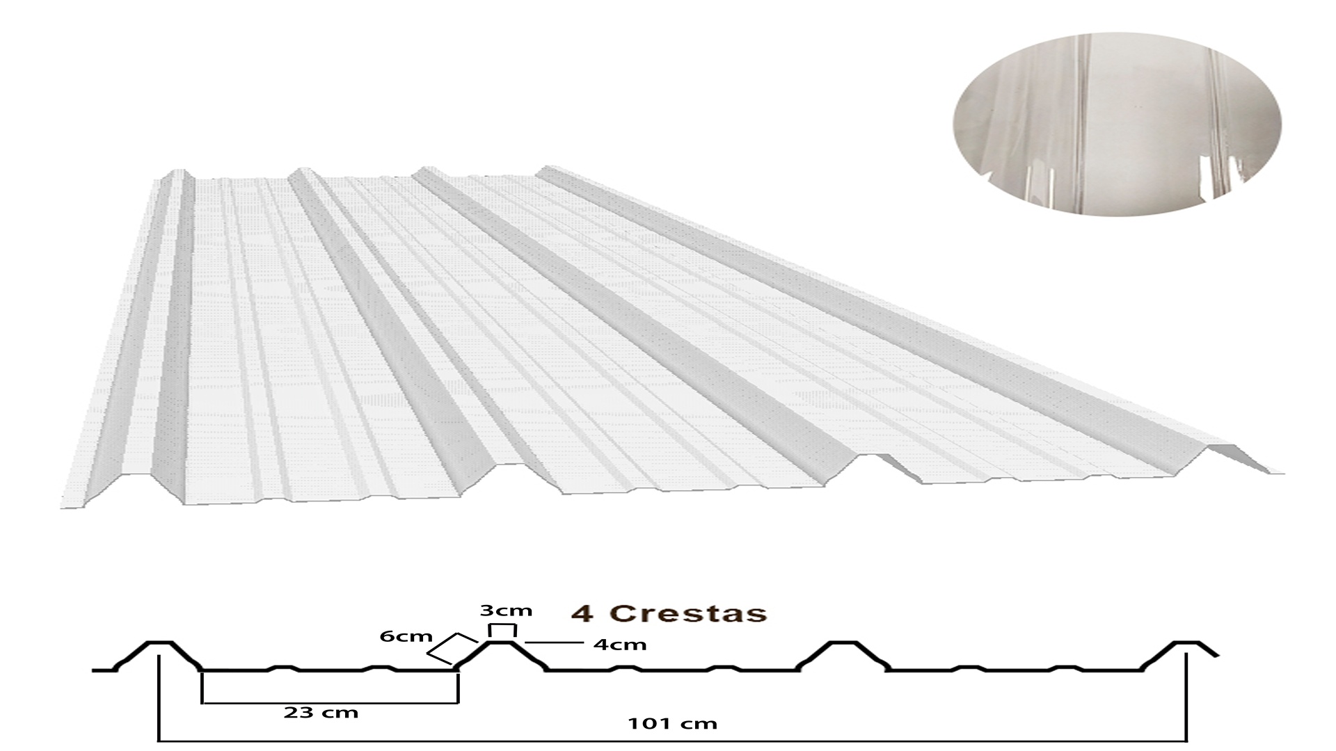 LAMINA POLICARBONATO PERFIL 4 CRESTAS ALUZINC L-102 8 CLEAR