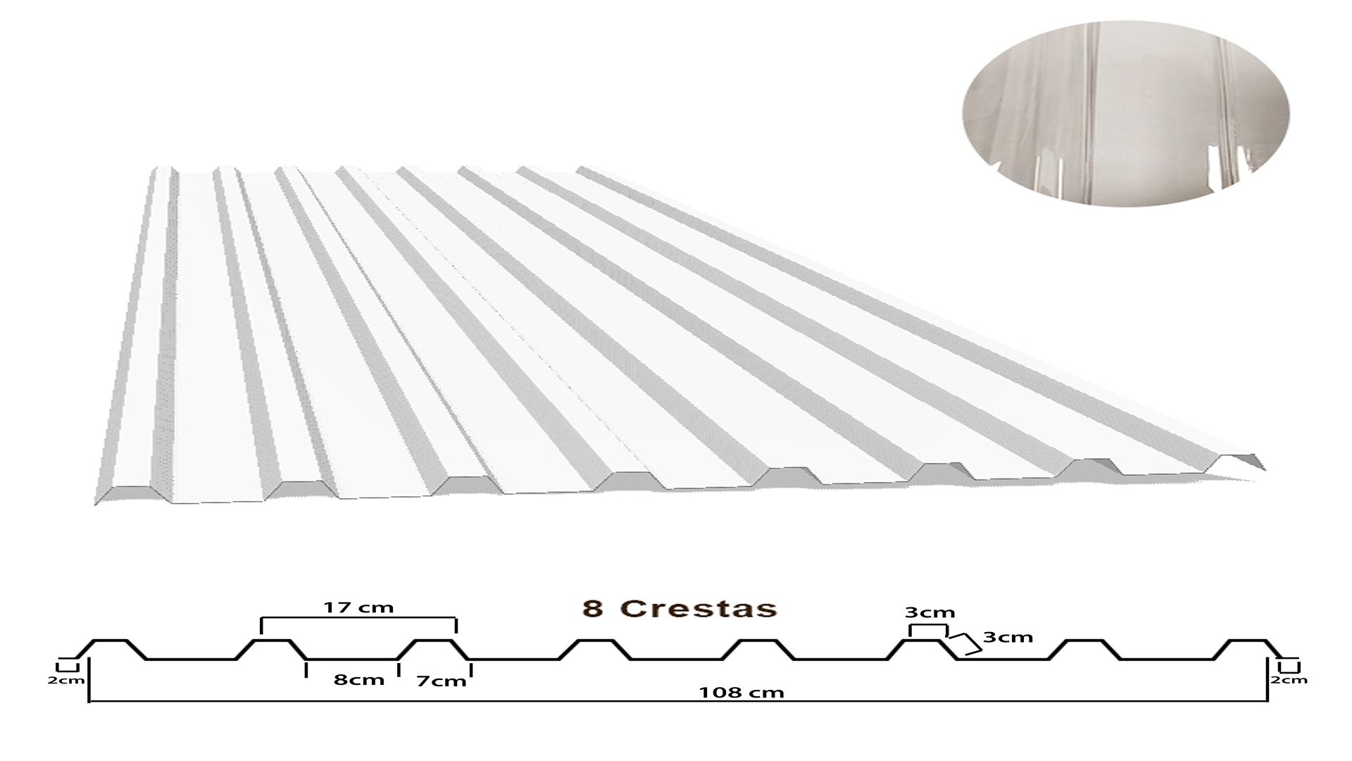LAMINA POLICARBONATO PERFIL 8 CRESTAS ALUZINC L-101 8CLEAR