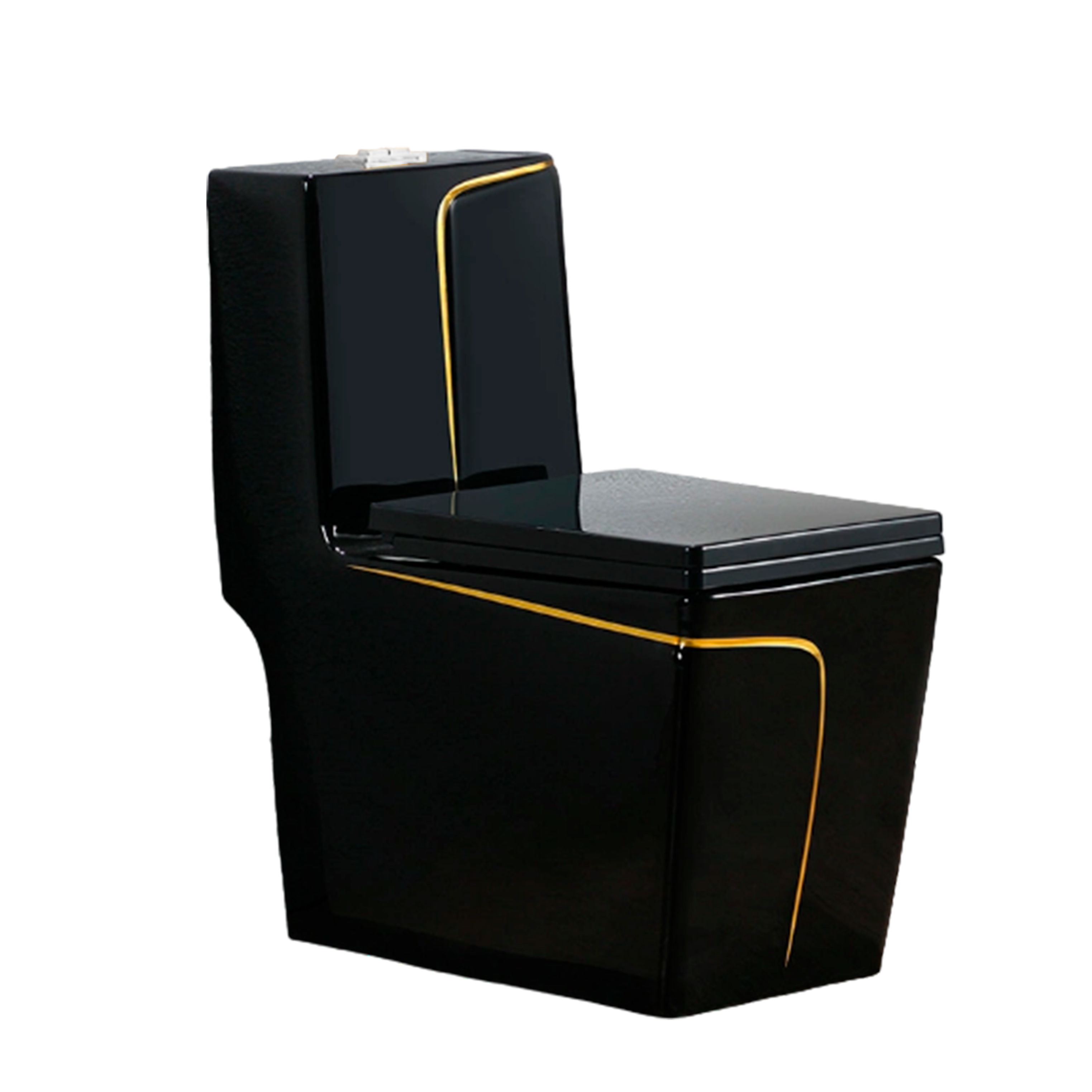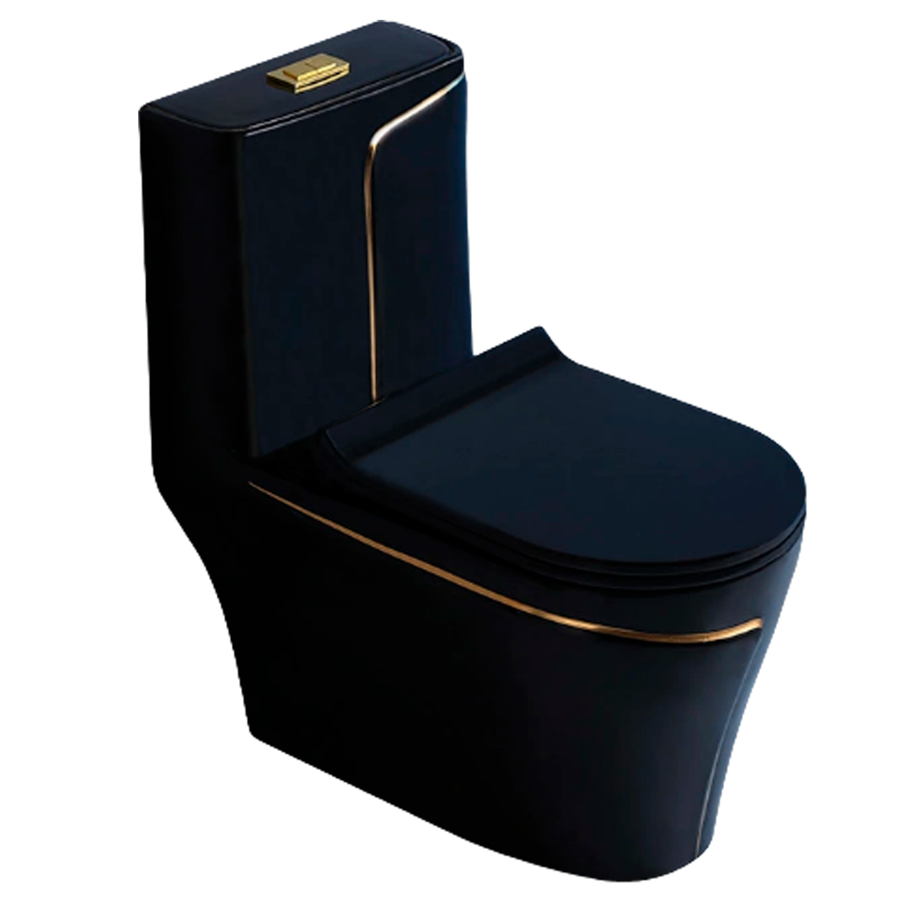 INODORO ONE PIECE CENTURY SERBIA NEGRO DORADO CON ASIENTO DE CIERRE LENTO DESCAGA 3L/6L