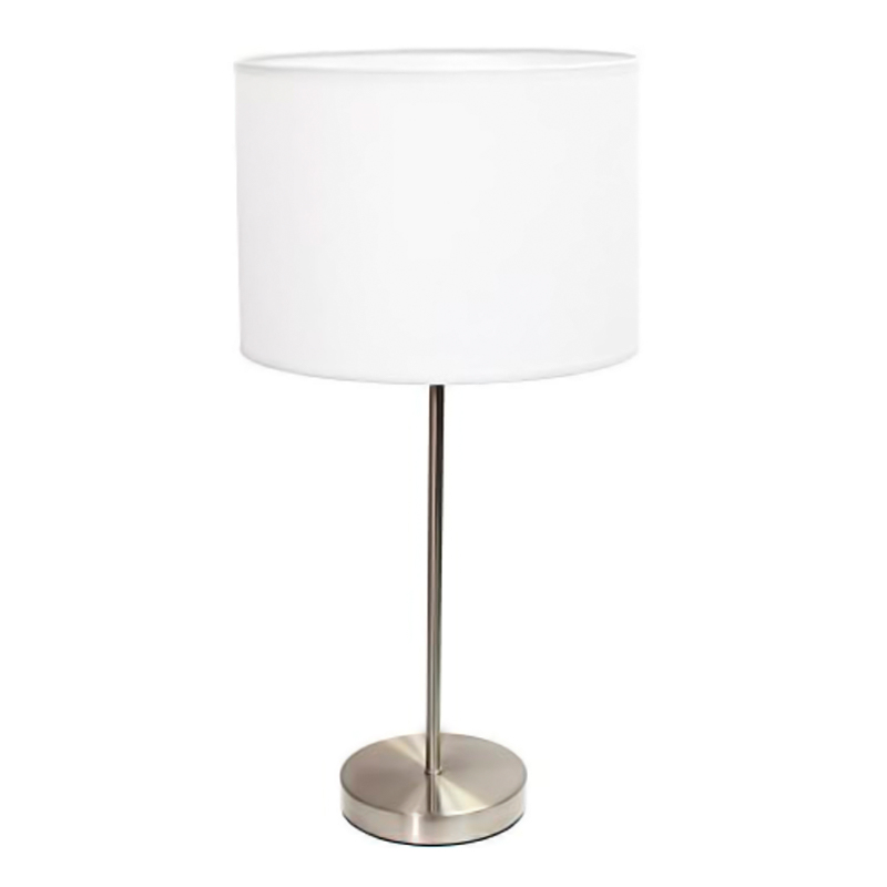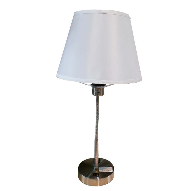 LAMPARA P/MESA DE TELA BLANCA/METAL NIQUEL CON TOMA USB EN BASE, E27X1 BOMBILLO (NO INCLUIDO) D13"X2