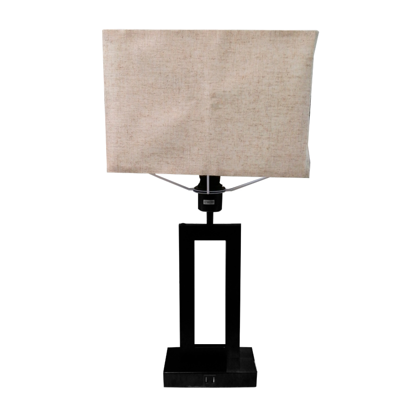 LAMPARA MINIMALISTA RECTANGULAR P/MESA DE TELA BEIGE/METAL NEGRO CON TOMA USB EN BASE, E27X1 BOMBILL