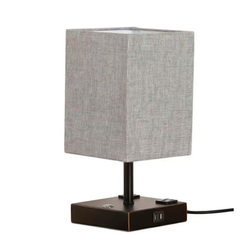 LAMPARA MINIMALISTA RECTANG/VERTICAL P/MESA DE TELA GRIS/METAL NEGRO CON TOMA USB EN BASE, E27X1 BOM