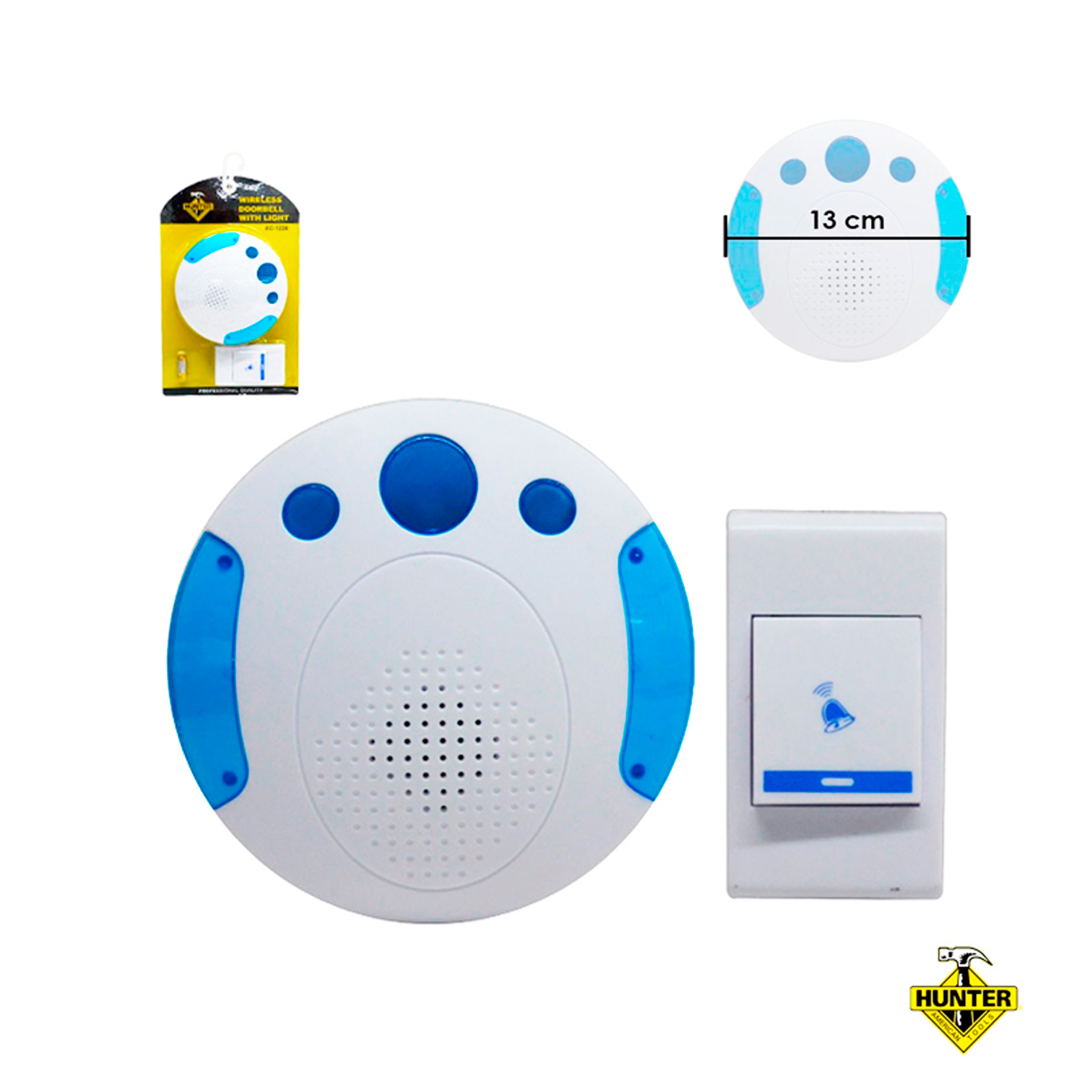 TIMBRE INALAMBRICO CON LUZ, REDONDO, AZUL
