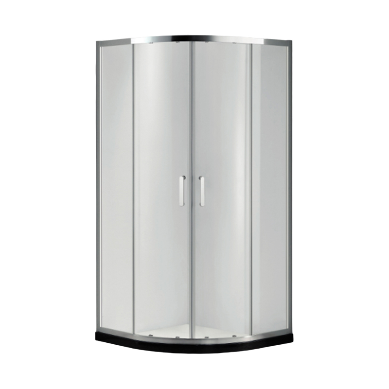 PUERTA DE BAÑO CURVA 0.9MX9MX1.95M VIDRIO TEMPLADO, CON 2 PUERTAS CORREDIZAS, ACABADO ALUMINIO
