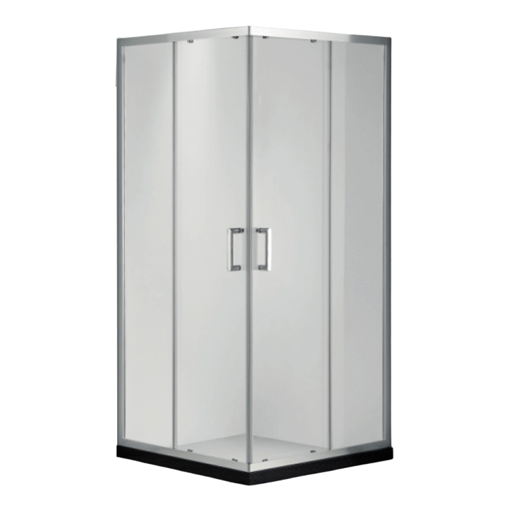 PUERTA DE BAÑO ESQUINERA 1MX1MX1.95M VIDRIO TEMPLADO, CON 2 PUERTAS CORREDIZAS, ACABADO ALUMINIO